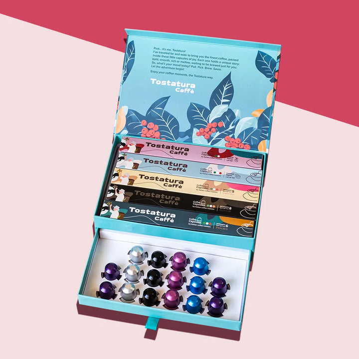 Looking for the perfect gift for coffee lovers? The Tostatura Coffee Sleeve Gift Box is a luxurious and customizable set that’s ideal for special occasions or personal indulgence. Thoughtfully designed with a modern, elegant finish, each box includes a built-in drawer to keep your Nespresso-compatible capsules neatly organized and easy to access.